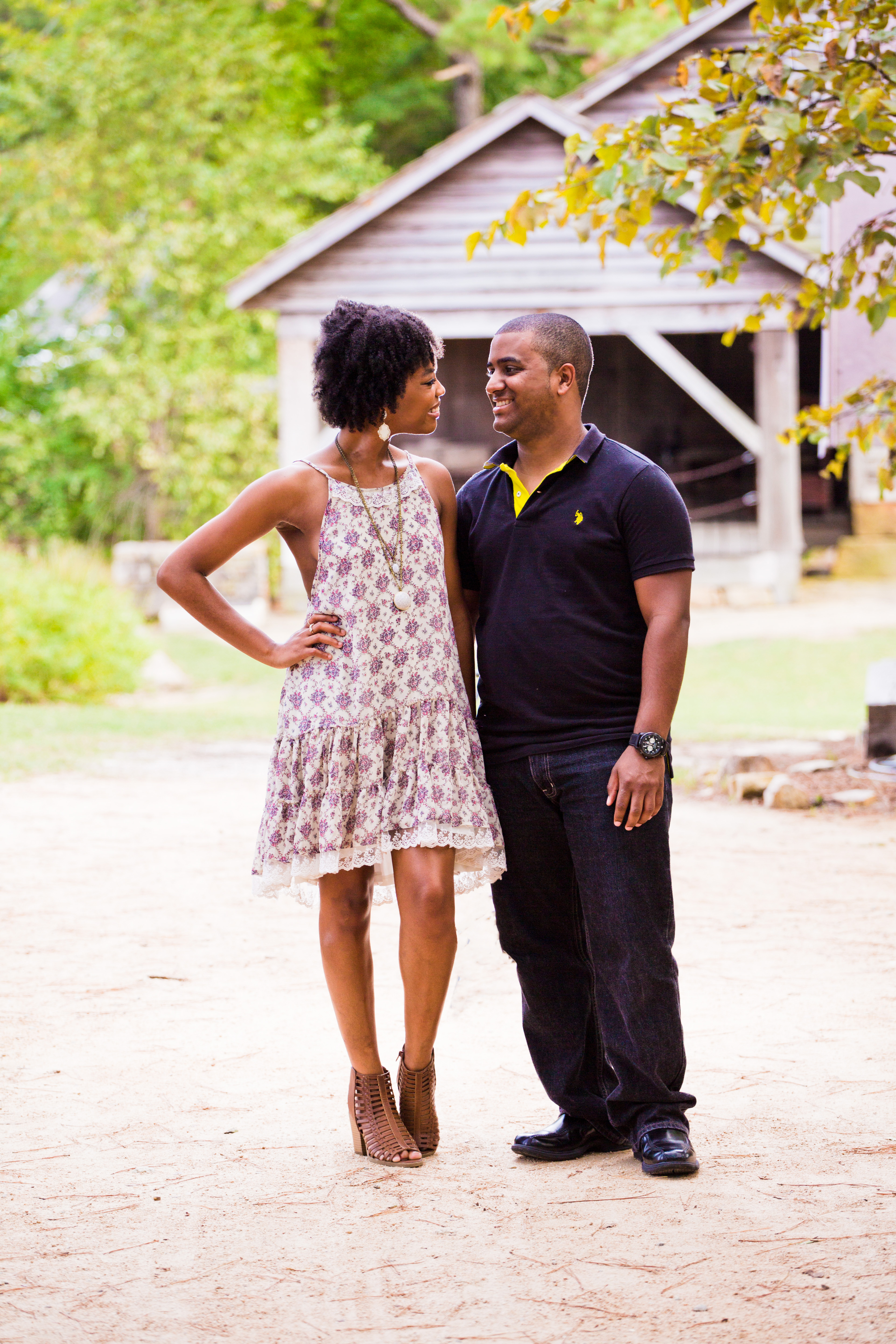 We had fun capturing their engagements out at Historic Yates Mill with the end of summer weather. So needless to say we survived a little mugginess! But survived none the less. While we were over by the lake, the cricket noises and bugs buzzing along with the lilly type growth on the pond made me suddenly have the urge to start singing , “You wanna KISS de girl” from the Little Mermaid. Complete with the impersonation and back up. Don’t know what these guys thought to make of it:) I can’t help to be a little silly sometimes.