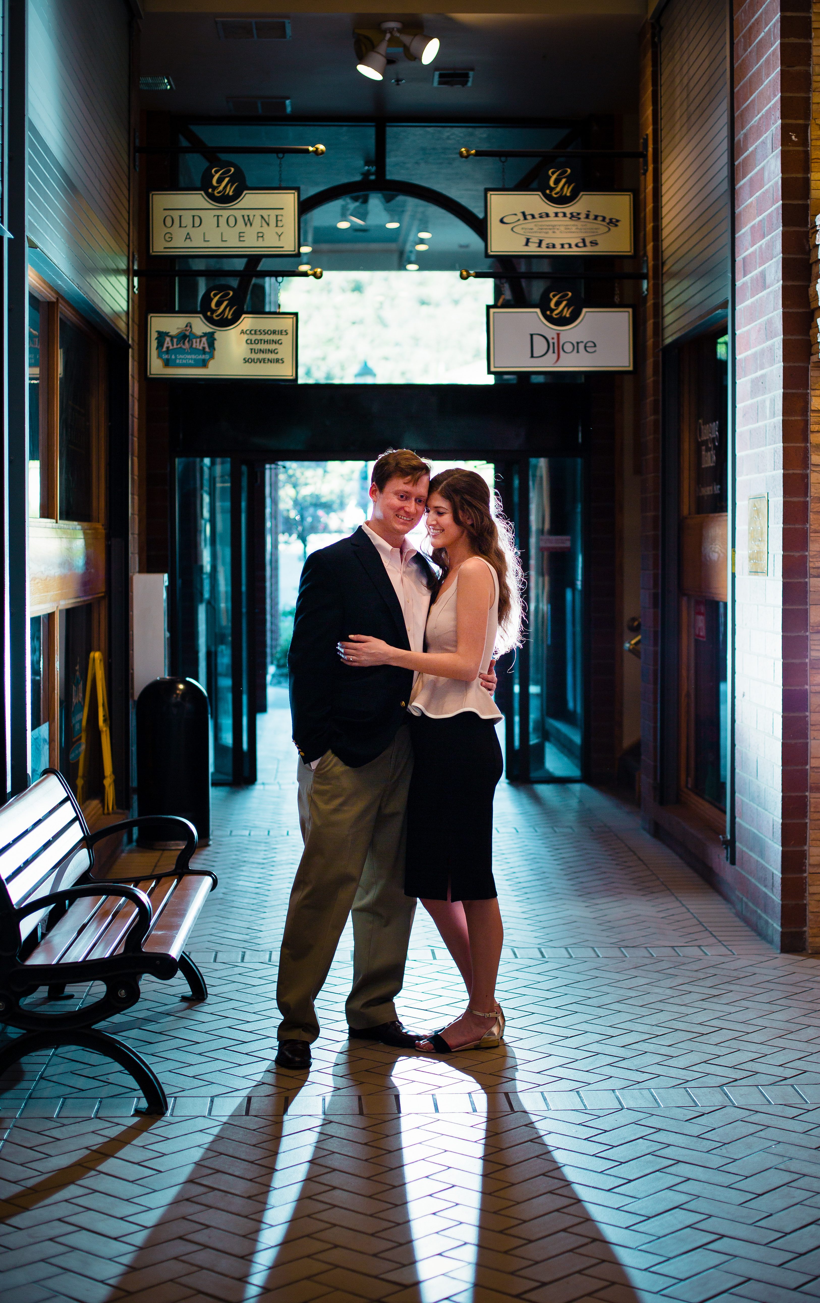 Kendra and Michael are such a classic couple. And one of those perfectly styled pairs too! We met on Main street in Park City to capture their engagement pictures. It was that much more special a location to them as this is where they actually got engaged. Before their anniversary date up there, Michael prearranged with the owner of the Rocky Mountain Chocolate shoppe to have the ring inserted in a treat. Then they cleverly swapped the box when they later went in the shoppe on their date and thank goodness it got to them! He played it cool to not spoil the surprise as she wasn’t quite ready to have her chocolate dessert but a while later after they wandered the shops a bit they found a quite place to open the box and he pops the question! And to make it even more romantic, it was snowing.