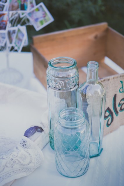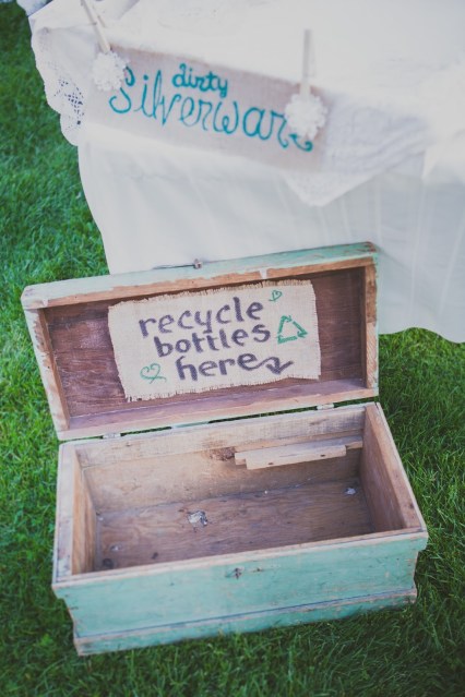 To help with the cleanup and to take a green approach, an old vintage box and burlap labels were used to direct guests to recycle their bottles.