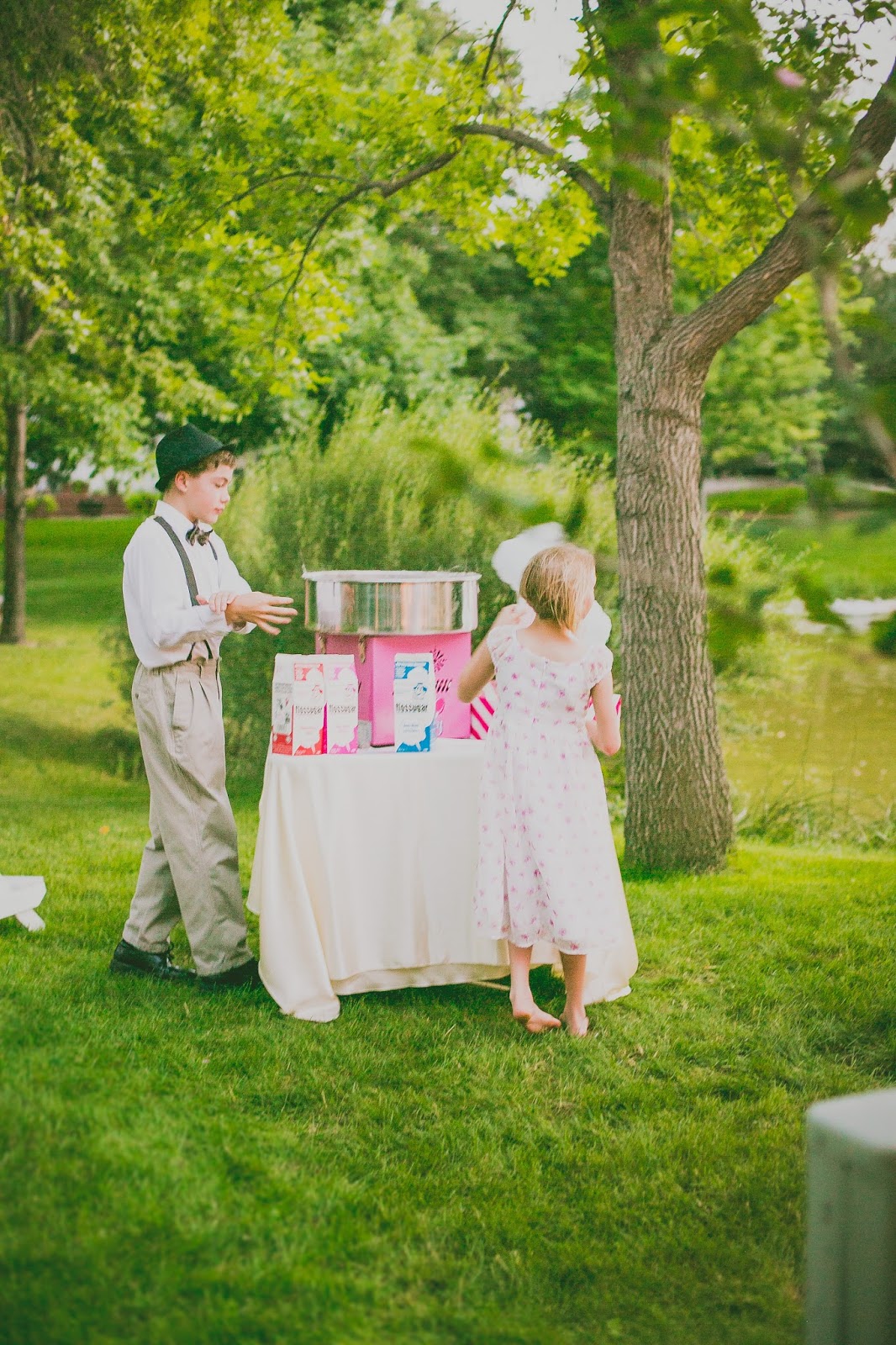 This is a huge hit! And perfect for that outdoor wedding with the fun vintage vibe. The kids were crazy about it and all gathered around excitedly to observe and feast on a their sticky feast. I would have added a decorative grab-able hand wipes container close by too for all the sticky hands.