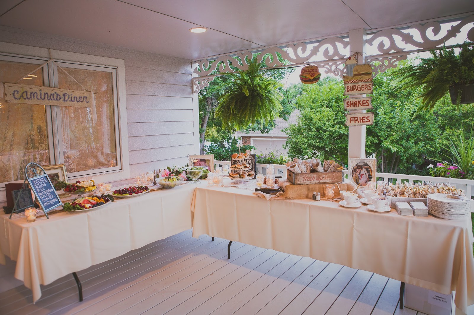 For this wedding they had Culvers ice cream cater in with amazing milkshakes and they were served up at a bar constructed of antique doors. Hobby Lobby had an assortment of cute retro signs for the 50’s diner vibe to add to it and painted on old worn wood was labeled “soda fountain”. Vintage bar stools graced the bar too with the dance floor close by.